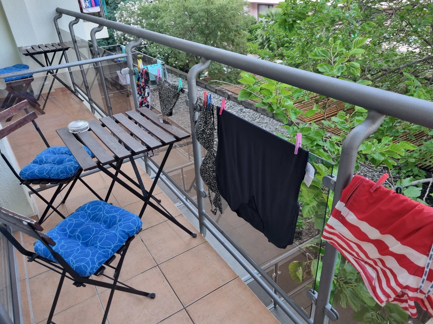 Kleiner Balkon, Wäsche muss an der Brüstung aufgehangen werden