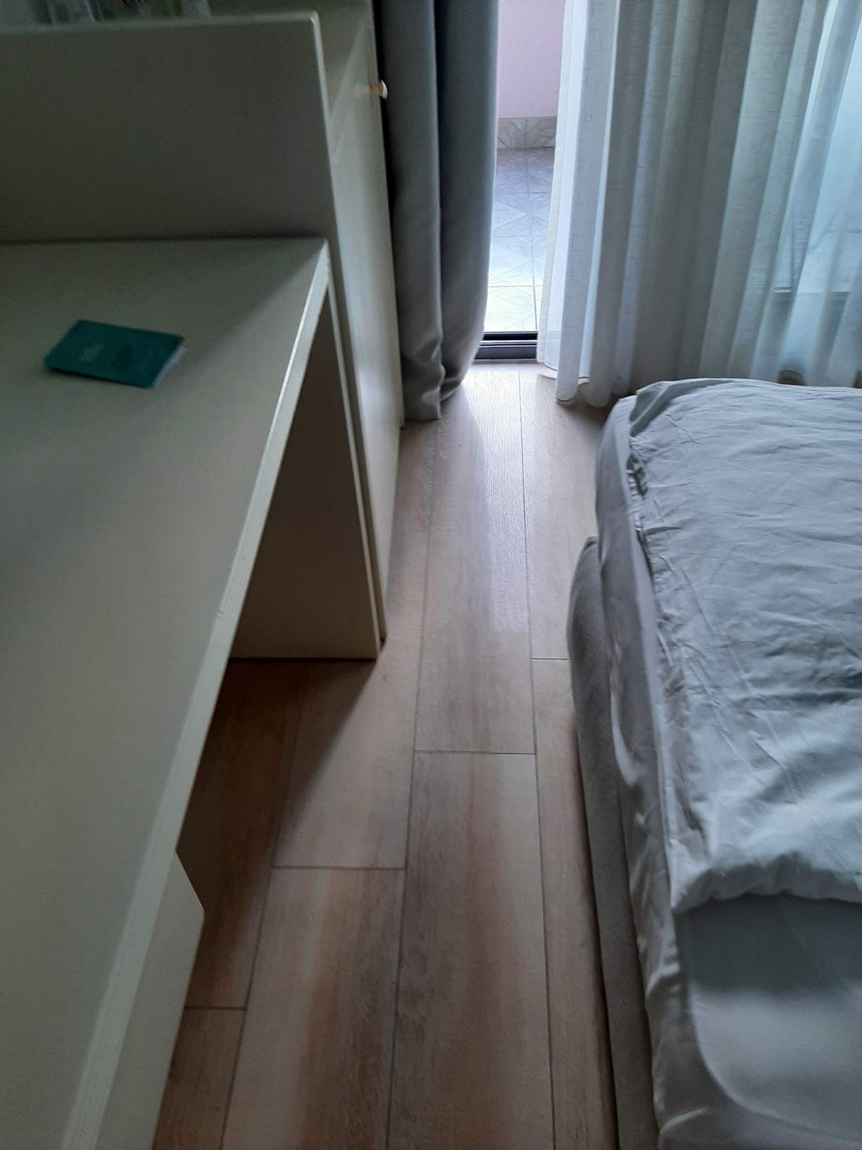 enger Weg zwischen Bett und Möbel