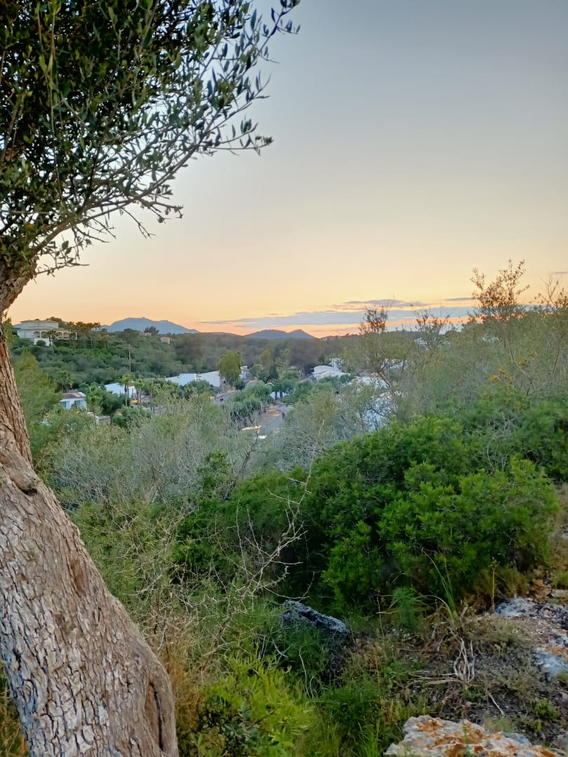 Sonnenuntergang über den Anlage Cala Domingos.