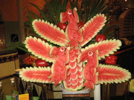 Des artistes dans la cuisine!Les décorations changent chaque jour, exécutés à l'aide de fruits et légumes