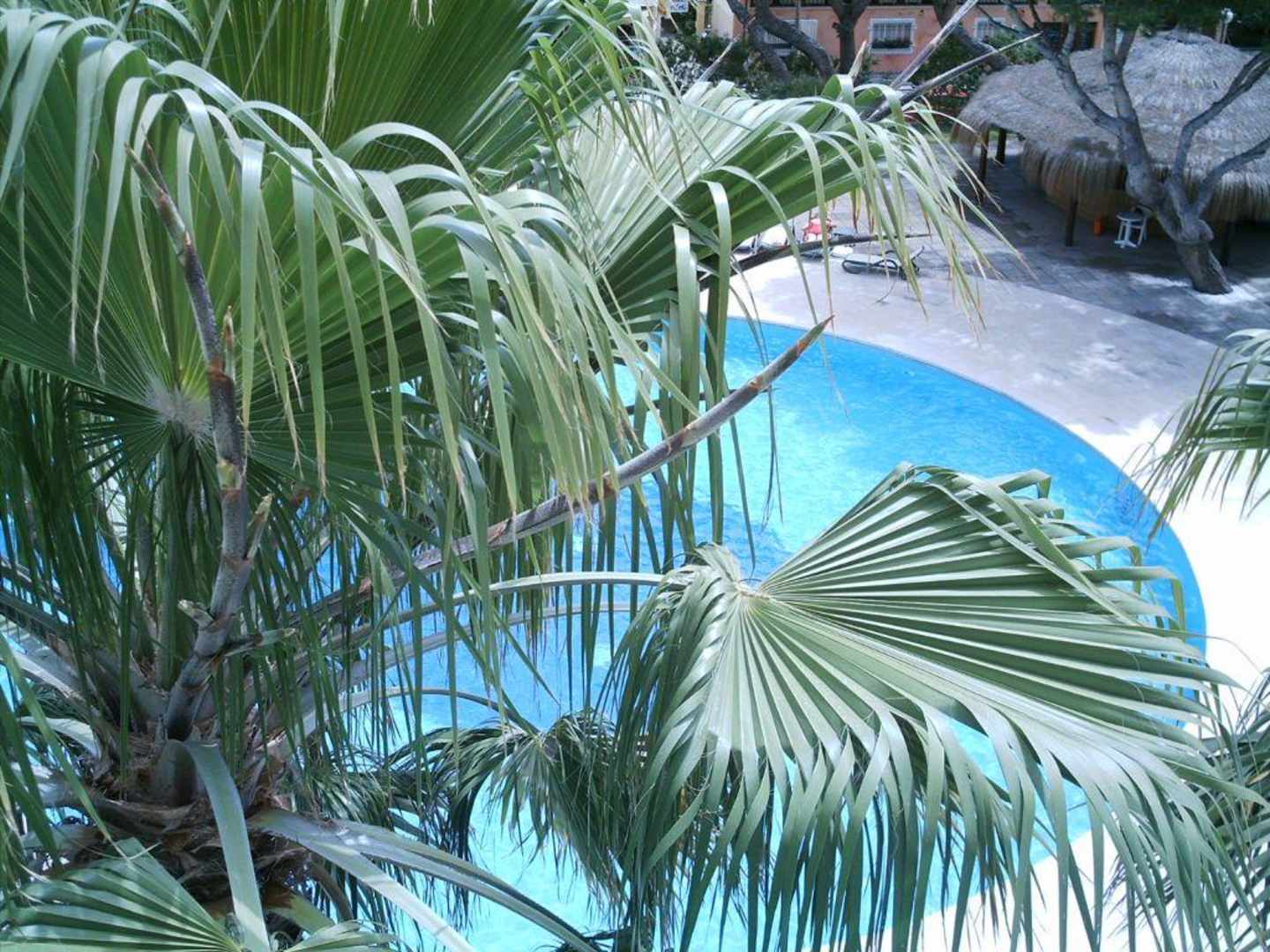 Blick aus dem Hotelzimmer zum Pool