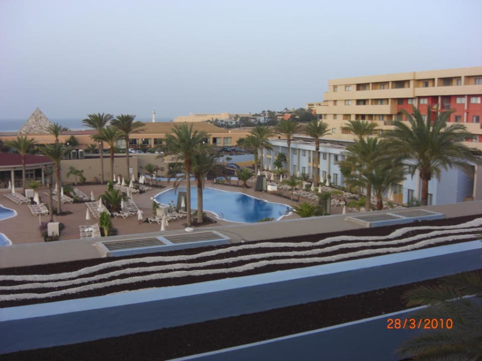 Blick vom Zimmer auf Poolanlage
