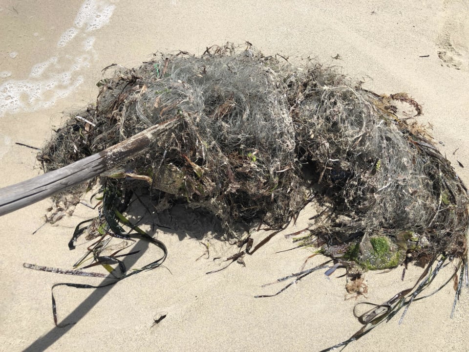 StrandDas alte Netz haben wir aus dem Wasser gefischt. Wirklich traurig.