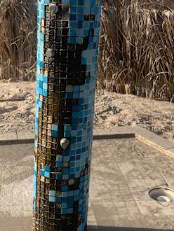Dusche am Strand, ohne Worte.