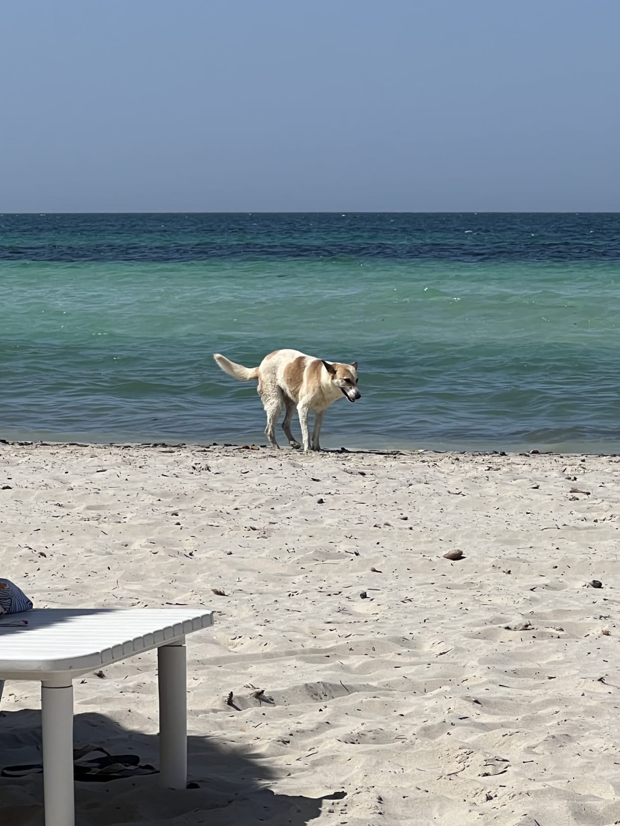 StrandHund verrichtet sein Geschäft, leider keine Seltenheit.