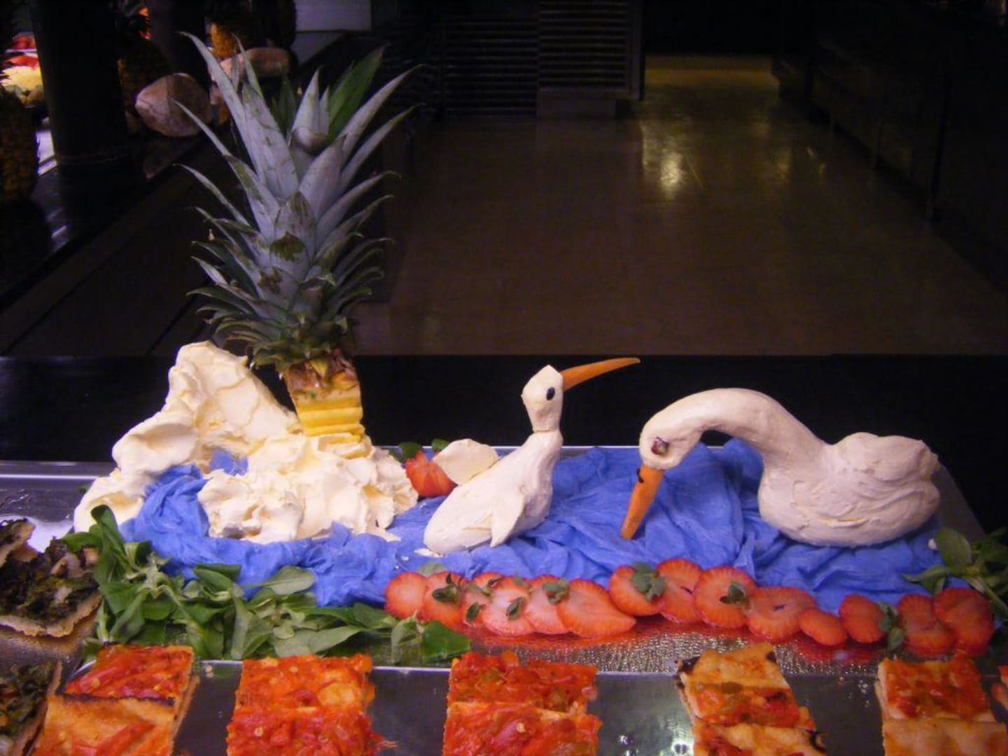 schöne Dekoration am BuffetInsel und Schwäne aus Butter