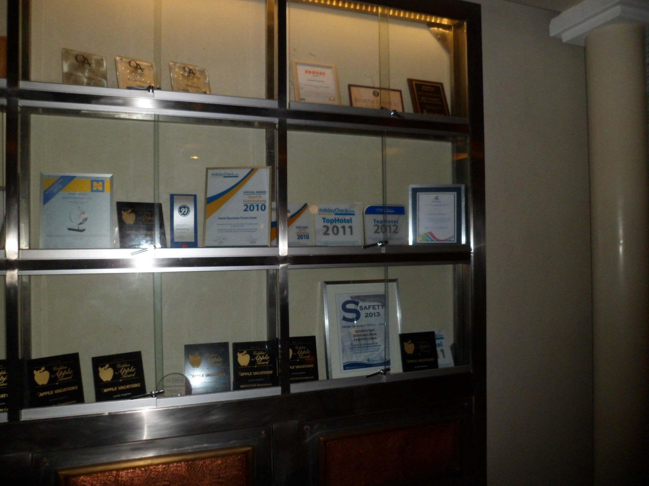 Vitrine mit den Awards.Diese Vitrine ist im Dominicana