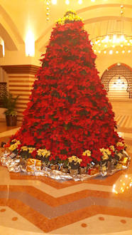 Schöner Weihnachtsbaum aus Weihnachtssternen in der Lobby