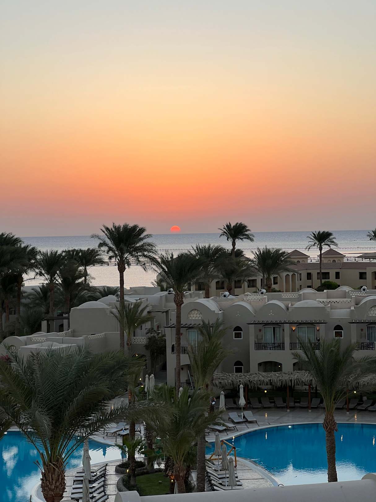 Sonnenaufgang vom Bayview Turm. Höchster Punkt in Makadi Bay. Ist im Hotel