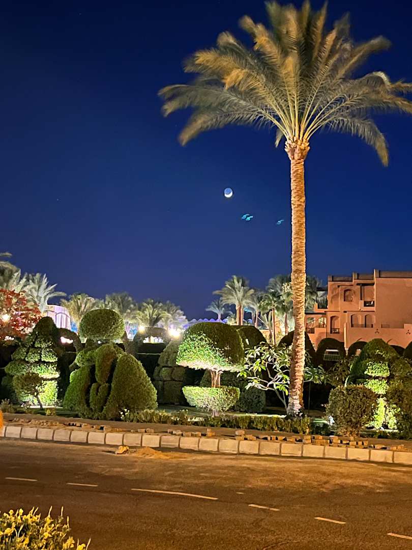 Gartenanlage im Mondschein.
