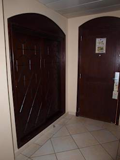 Gerade aus war die Zimmertür, links der Keiderschrank und rechts ging es ins Badezimmer.