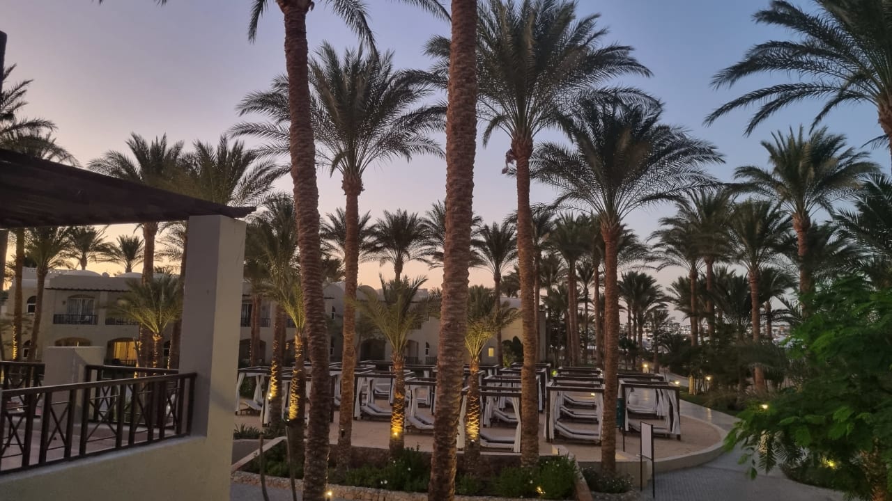 Blick auf den Ruhebereich bei Sonnenuntergang