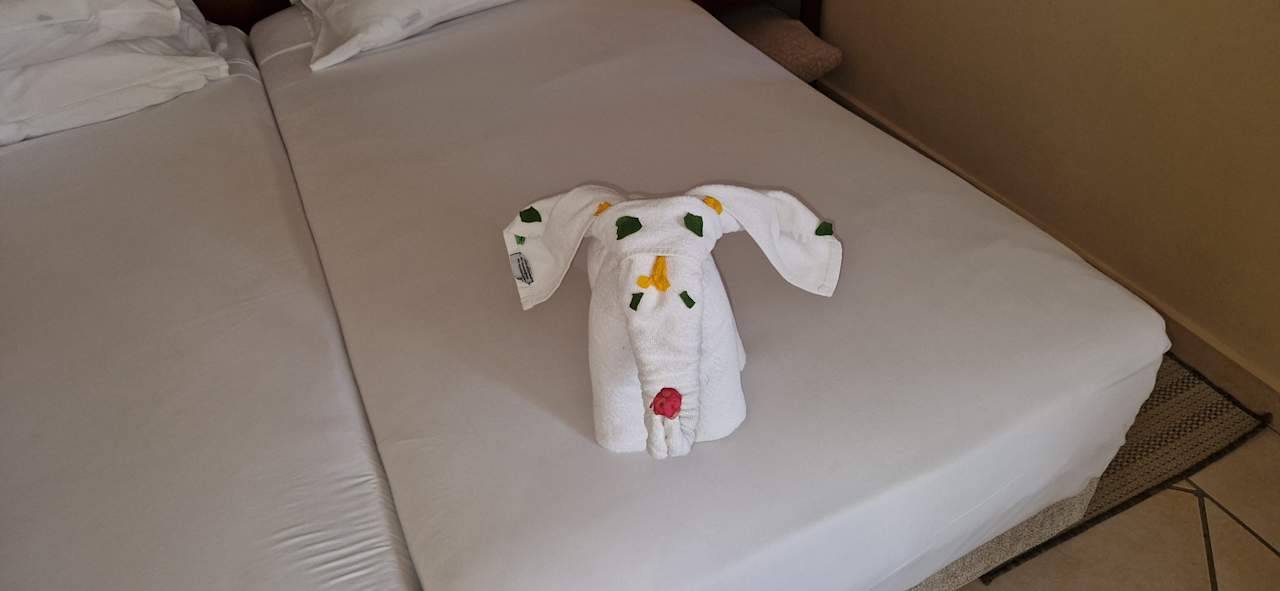 Irgendeine tolle Figur fanden wir täglich, gemacht aus unseren Handtüchern, nach der Zimmerreinigung vor.
