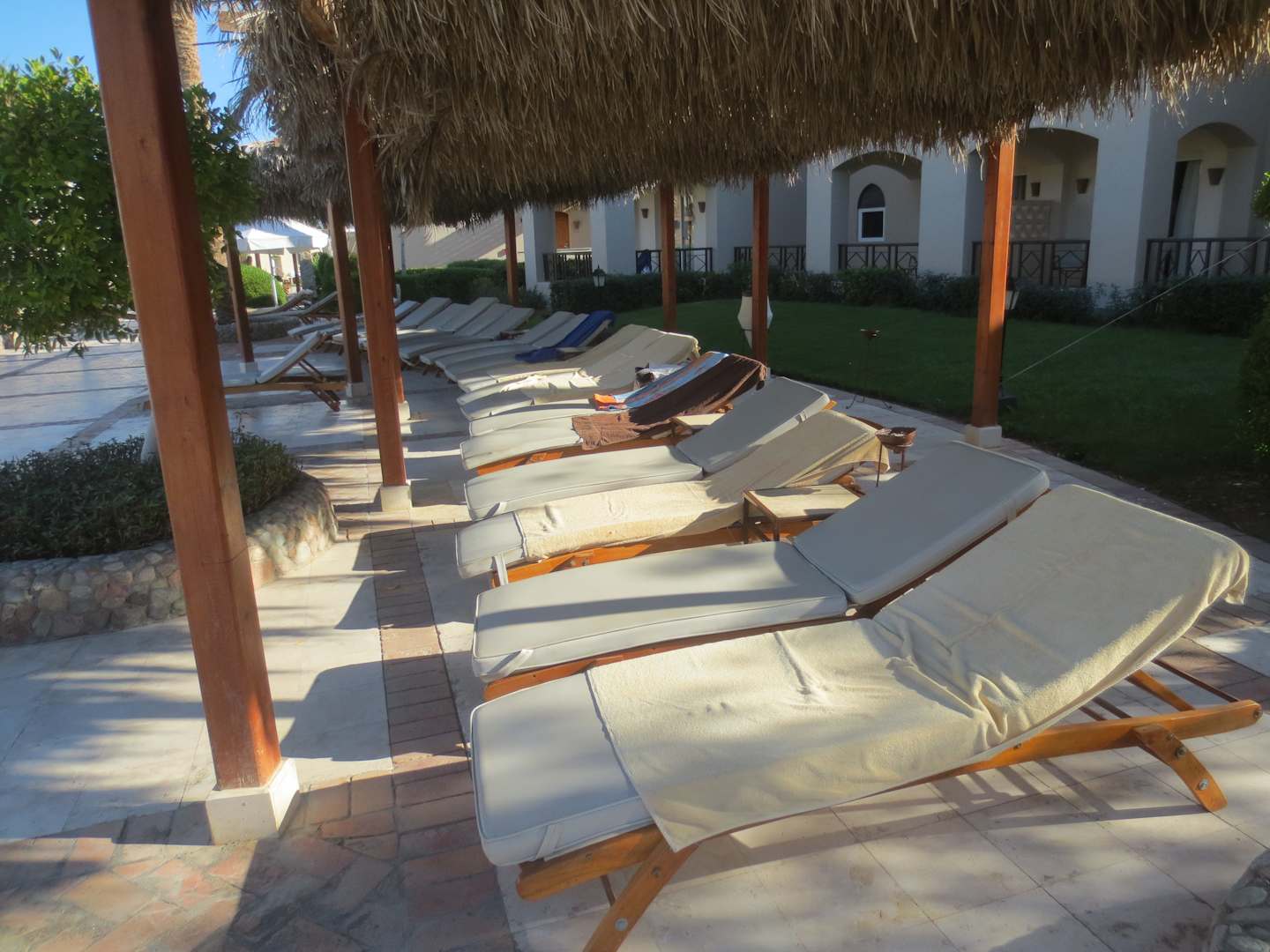 Reservierte Liegen am Morgen