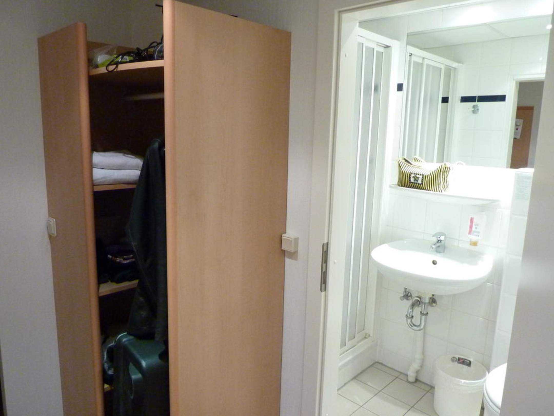 Viel Stauraum hat man leider nicht im Zimmer und im Bad gibt es kaum Ablagemöglichkeiten.