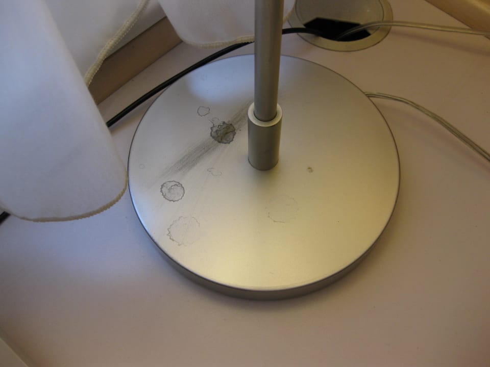 Nicht sehr schöner Lampenfuss...So sah es an vielen Stellen im Zimmer aus.... auch der Fliesenboden im Bad war ekelig.