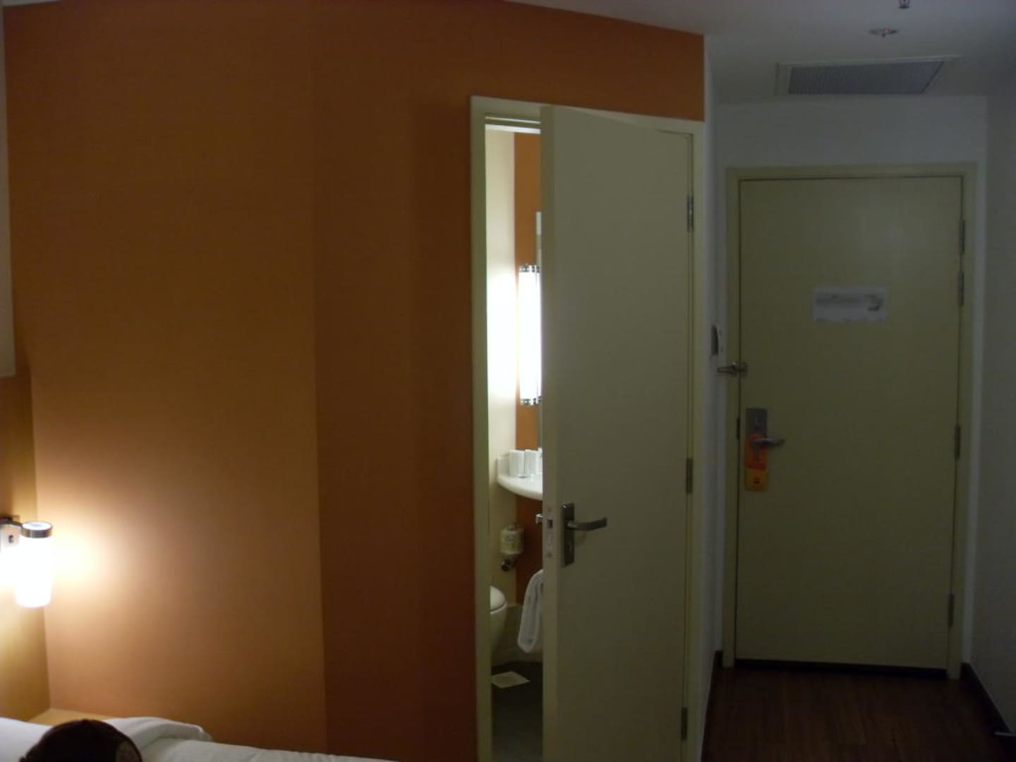 Im Zimmer mit Blick auf Bad und Zimmertür