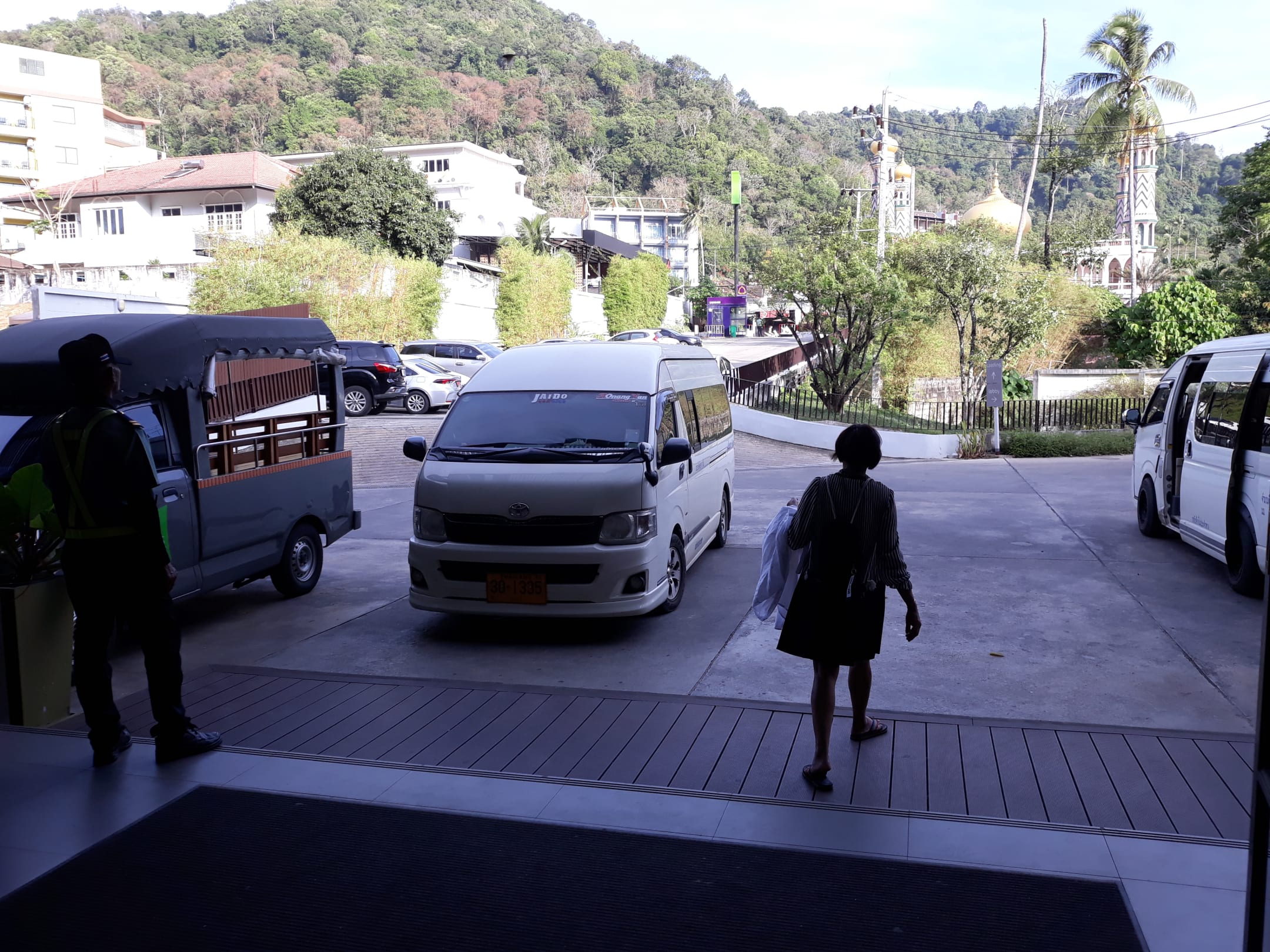 Hotelanfahrt und die Moschee im Hintergrund
