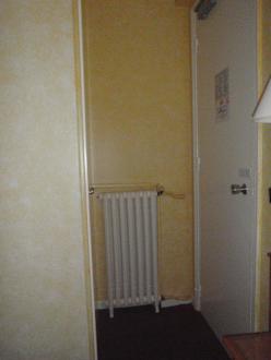 Eingang ins ZimmerMan kann erkennen, dass die Eingangstüre gerade so aufgeht, um nicht an den eingebauten Kasten anzustoßen ;-)