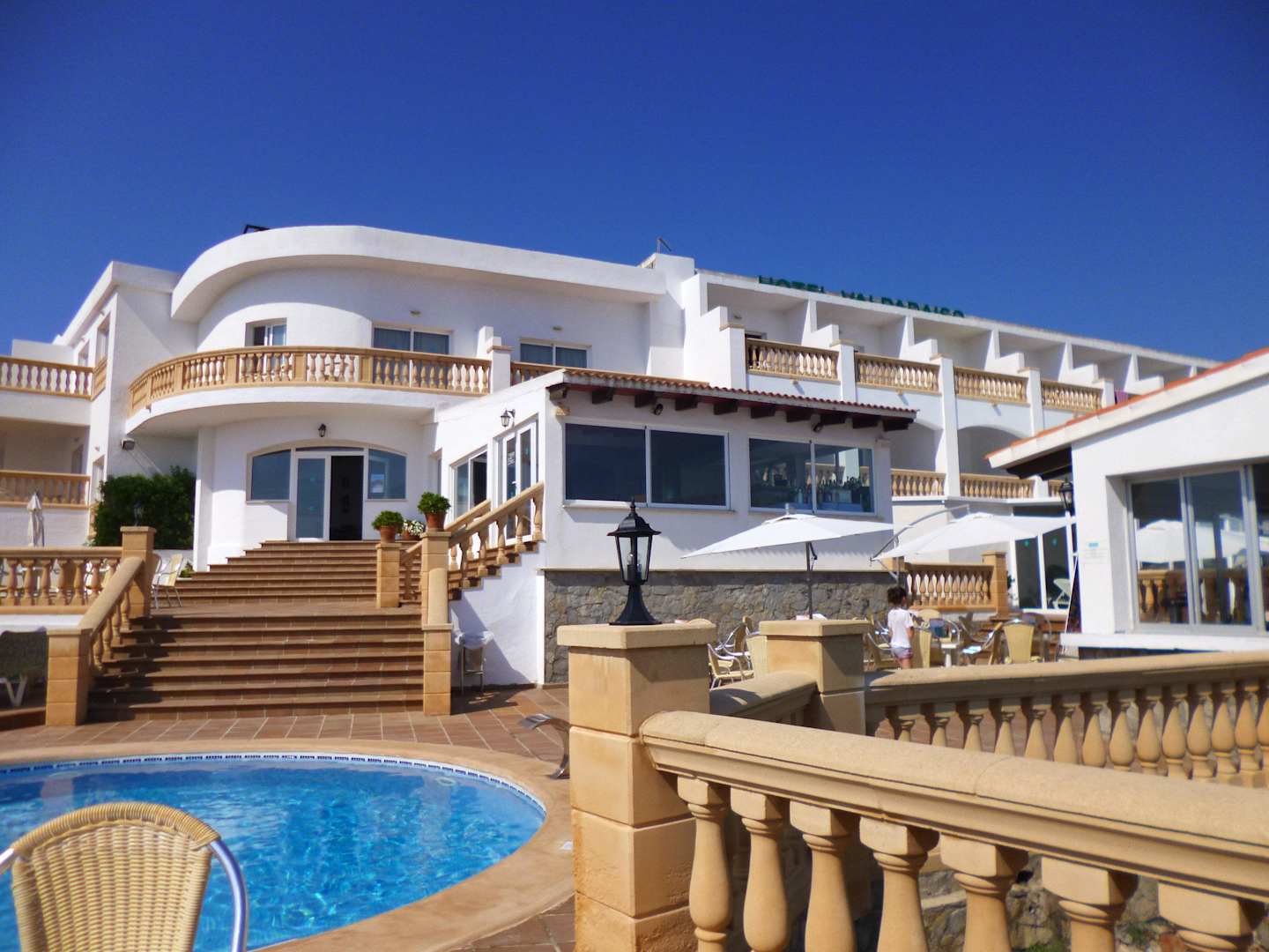Blick auf das Hotel vom Pool