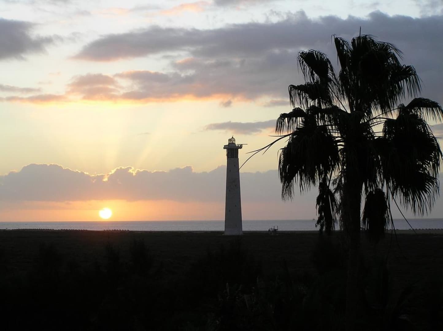 Sonnenaufgang, mit Leuchturm von Jandia. Aufgenommen von unserem Balkon im Altamarena