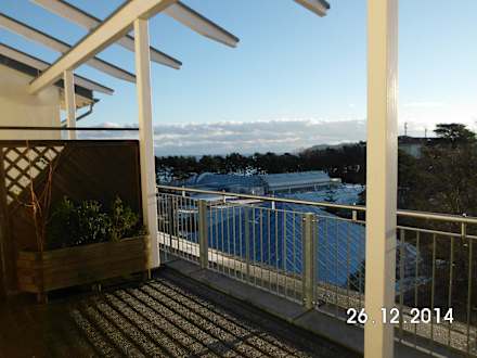 Terrasse und Ausblick Richtung Strand