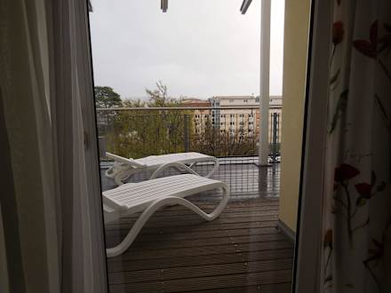 Blick vom Schlafzimmer auf die Dachterrasse
