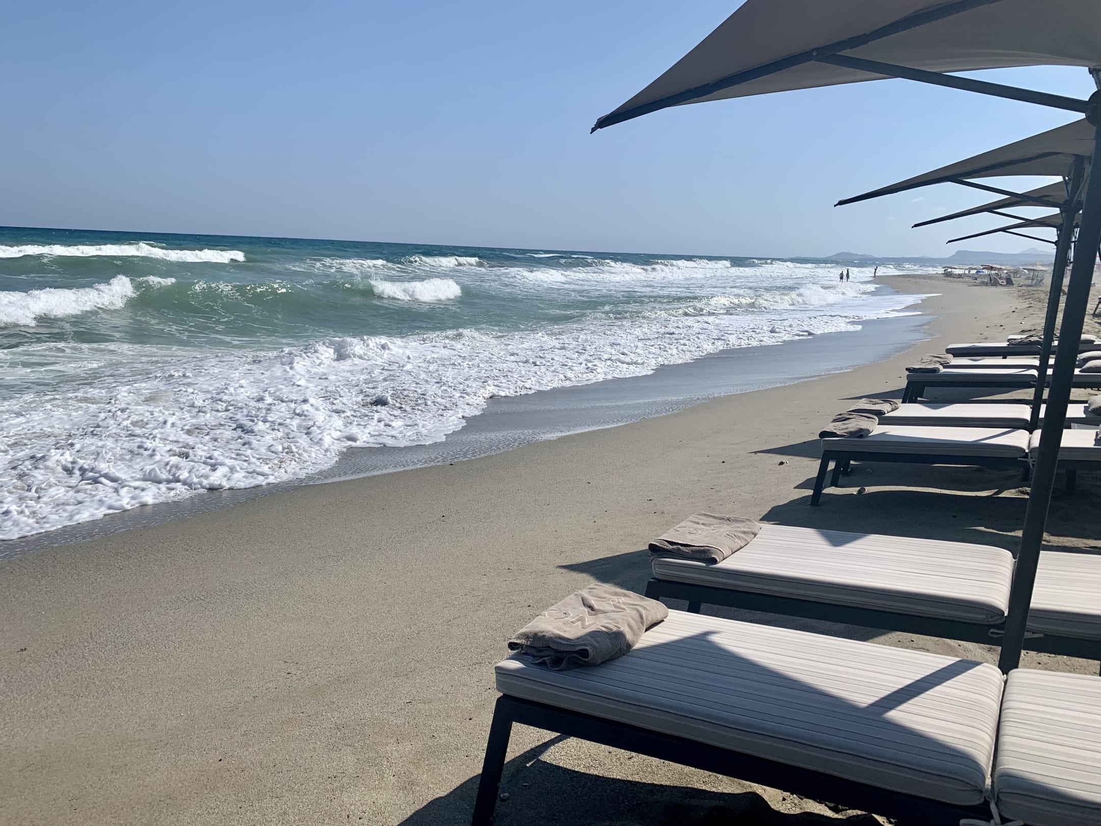 Hoteleigene Liegen und Sonnenschirme, super Service am Strand