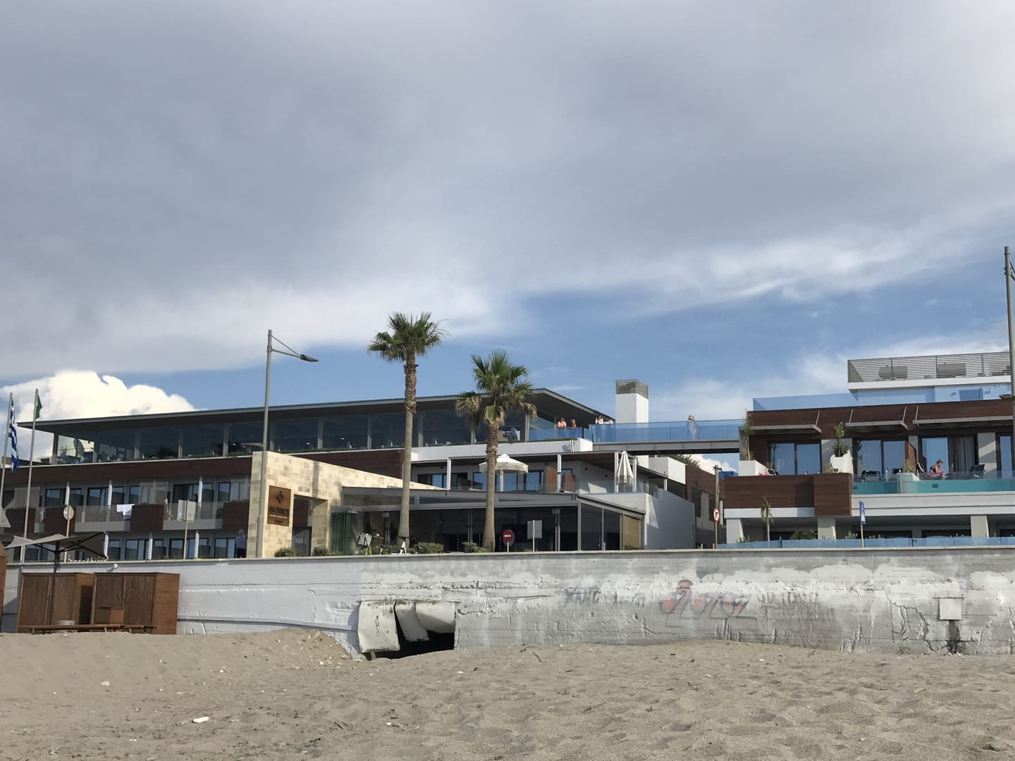Ansicht vom Strand auf beide Gebäude