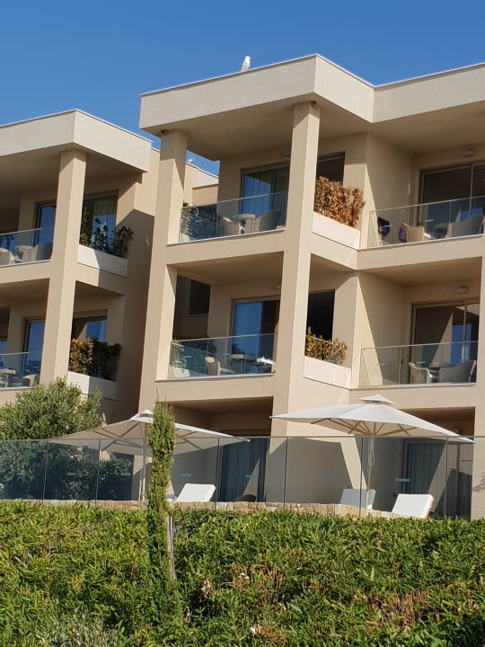 Zimmer im Luxury Bereich, in der Mitte die Junior Suiten. Man beachte die Vogelnester und die gefiederten Gäste an der Dachkante. Hier kommt wirklich alles Gute von Oben :-(