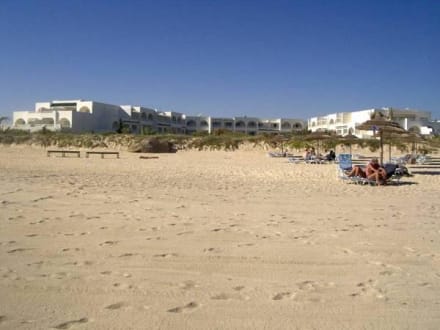 Blick vom Strand zum Hotel