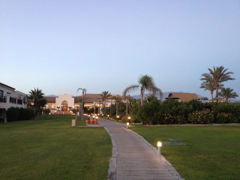 Gartenanlage und Restaurant vom Meer aus