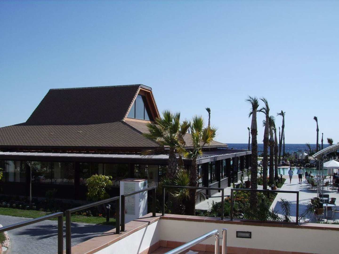 Blick von der Außenterrasse in Richtung PoolBlick von der Außenterrasse in Richtung Pool. Links die Poolbar.