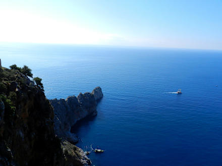 Dieser Felsen trennt in Alany die Strände City (links) und Cleopatra (rechts)