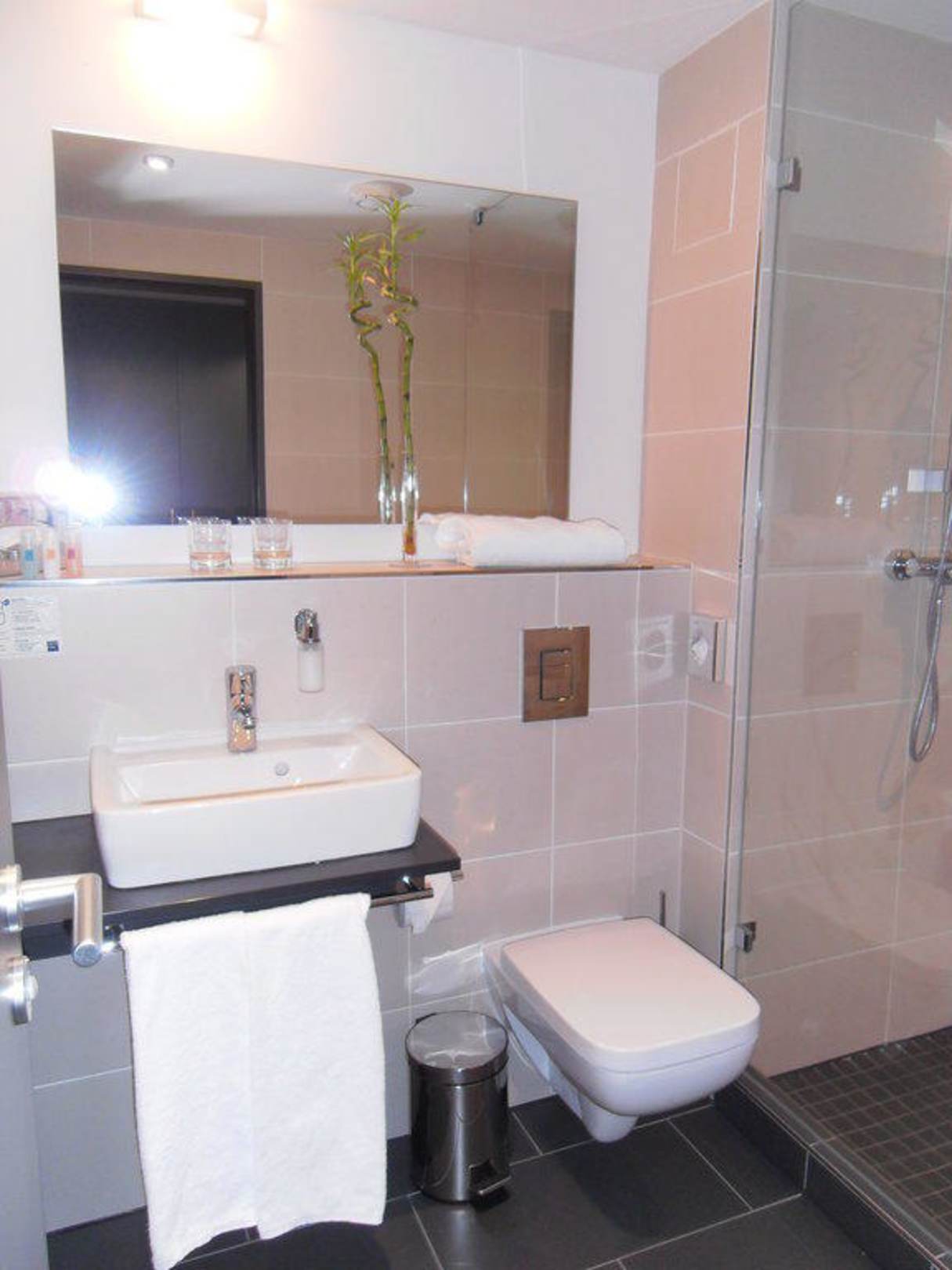 sehr schick und modern mit offener Dusche