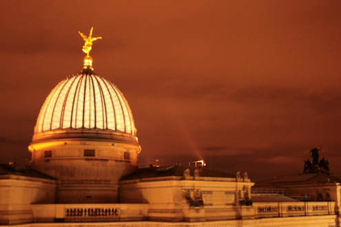 Die Glaskuppel der Hochschule für Bildende Künste (Zitronenpresse) bei Nacht