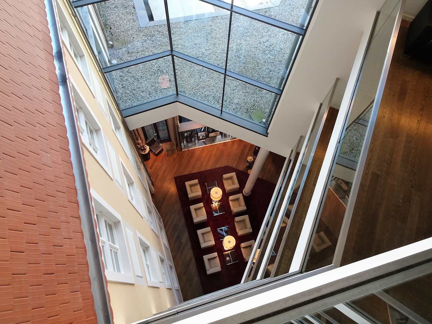 Blick aus dem Treppenhaus in die Lobby