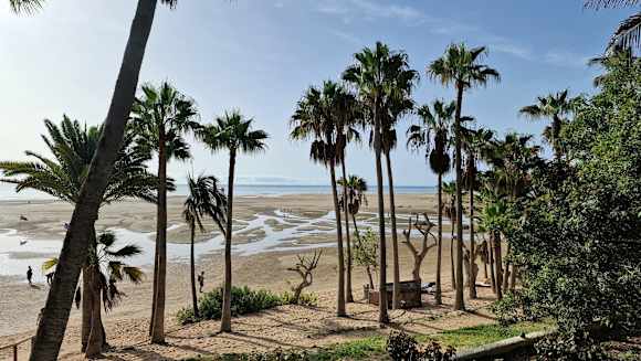 Blick vom Hotel in die Lagune, in der noch das Wasser der letzten Flut steht ...