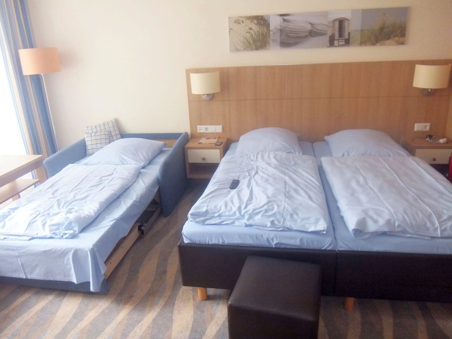 Gemütliches Bett mit einem von zwei Zustellbetten