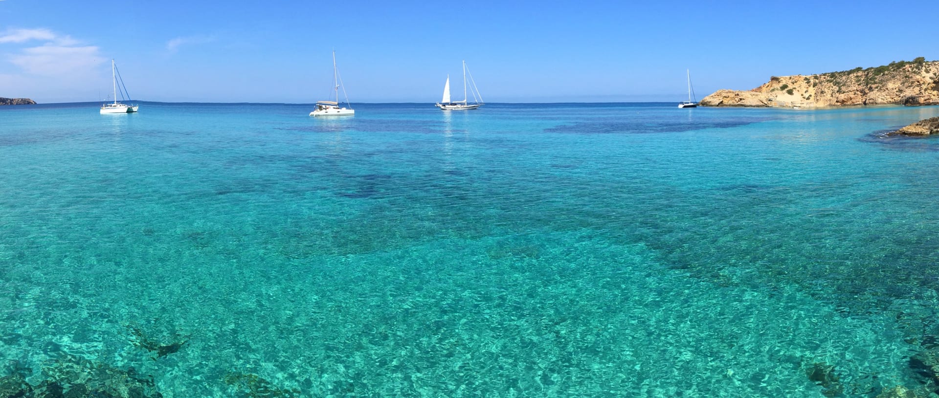 Glasklares Wasser in der Cala Tarida.