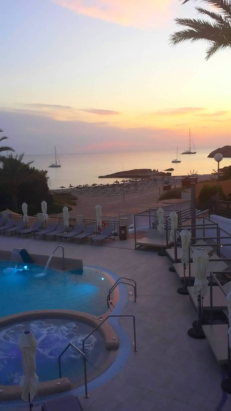 Blick über den Pool zu Hotelstrand