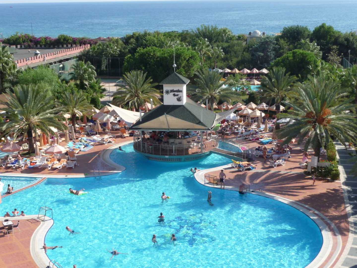 Ausblick aus einem Zimmer - Meerblick und Pool