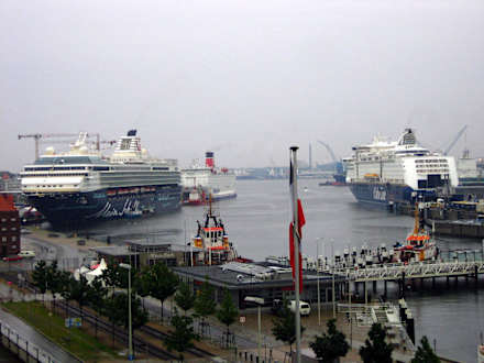 Blick aus dem Fenster in den HafenAm Morgen lag das TUI-Kreuzfahrtschiff "Mein Schiff" im Kieler Hafen