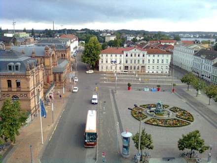 Ausblick vom Zimmer auf den ZOB Schwerin links das Bahnofsgebäude mit integriertem Mc Donald´s mit einem sehr schönen Vorplatz, in dieser richtung liegt auch der Haupteingang des Hotels