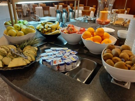 Obst und Joghurt beim Frühstück