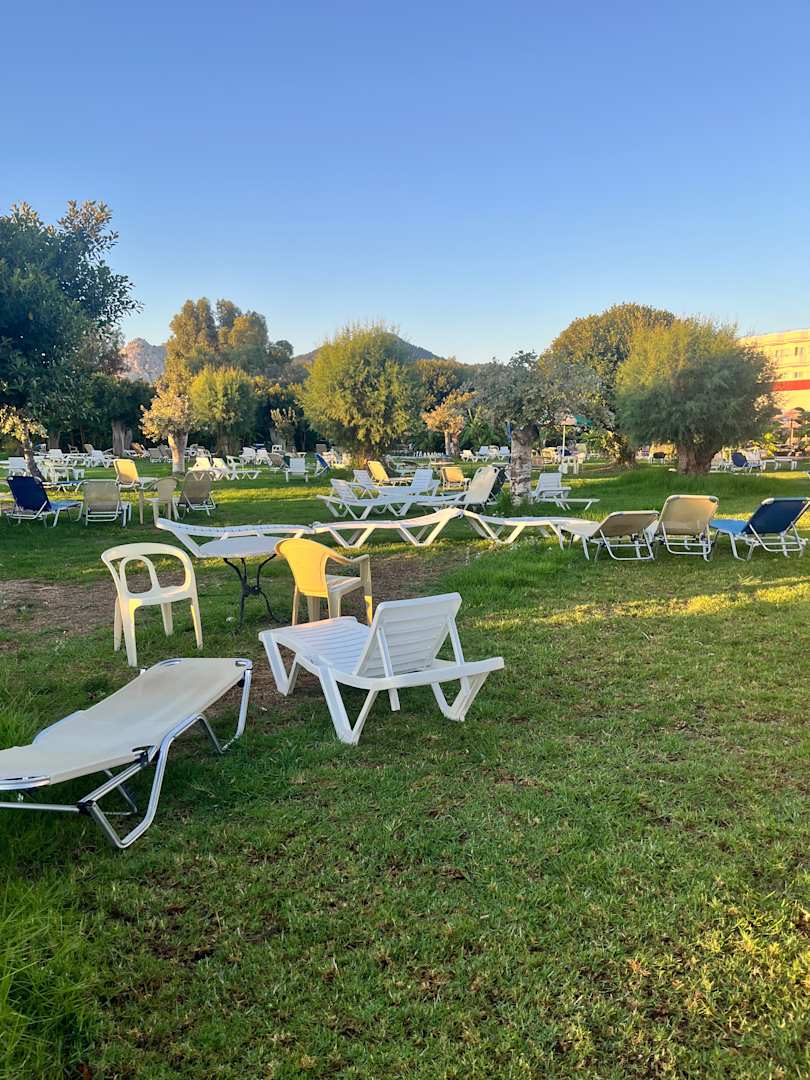 Da zuwenig liegen am Hauptpool waren , gab es eine Ungepflegte Liegewiese ohne Schirme . Am Stran sind die Liegen Kostenpflichtig mit 15 Euro für 2 liegen und einen Schirm.