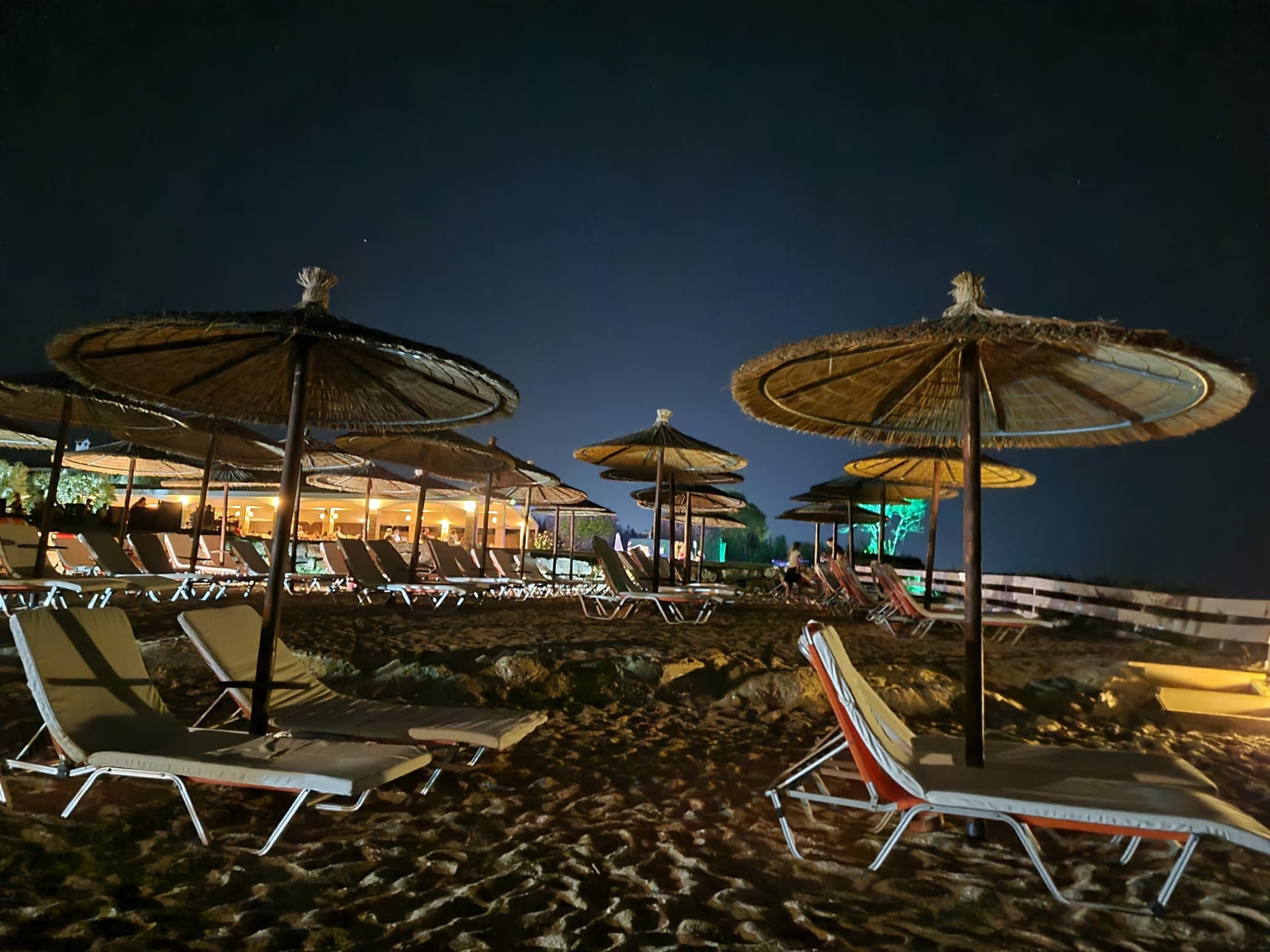 Im Hintergrund sieht man die Strandbar