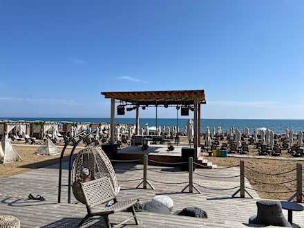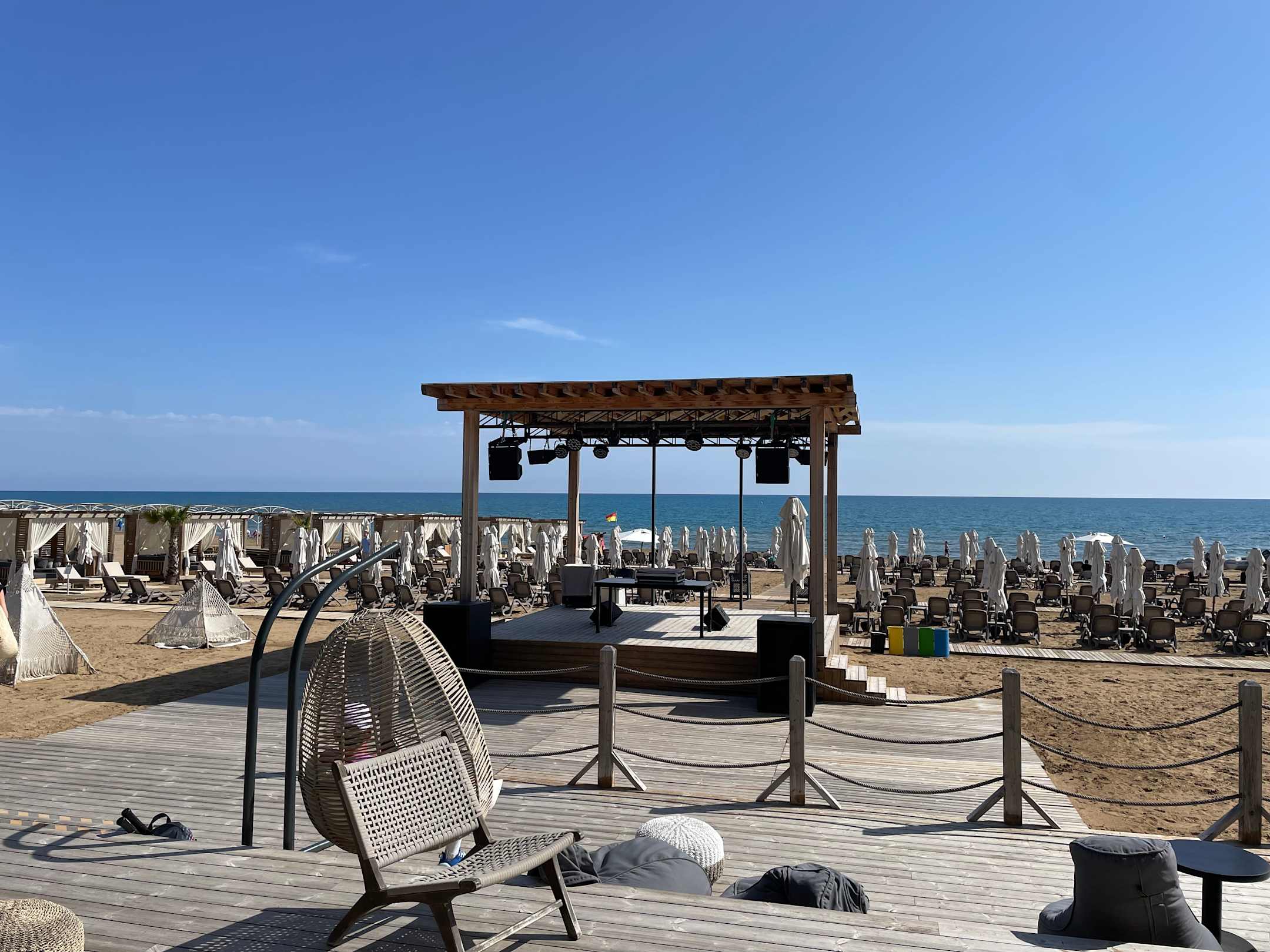 Bühne an der Strandbar. Meistens Housemusik
