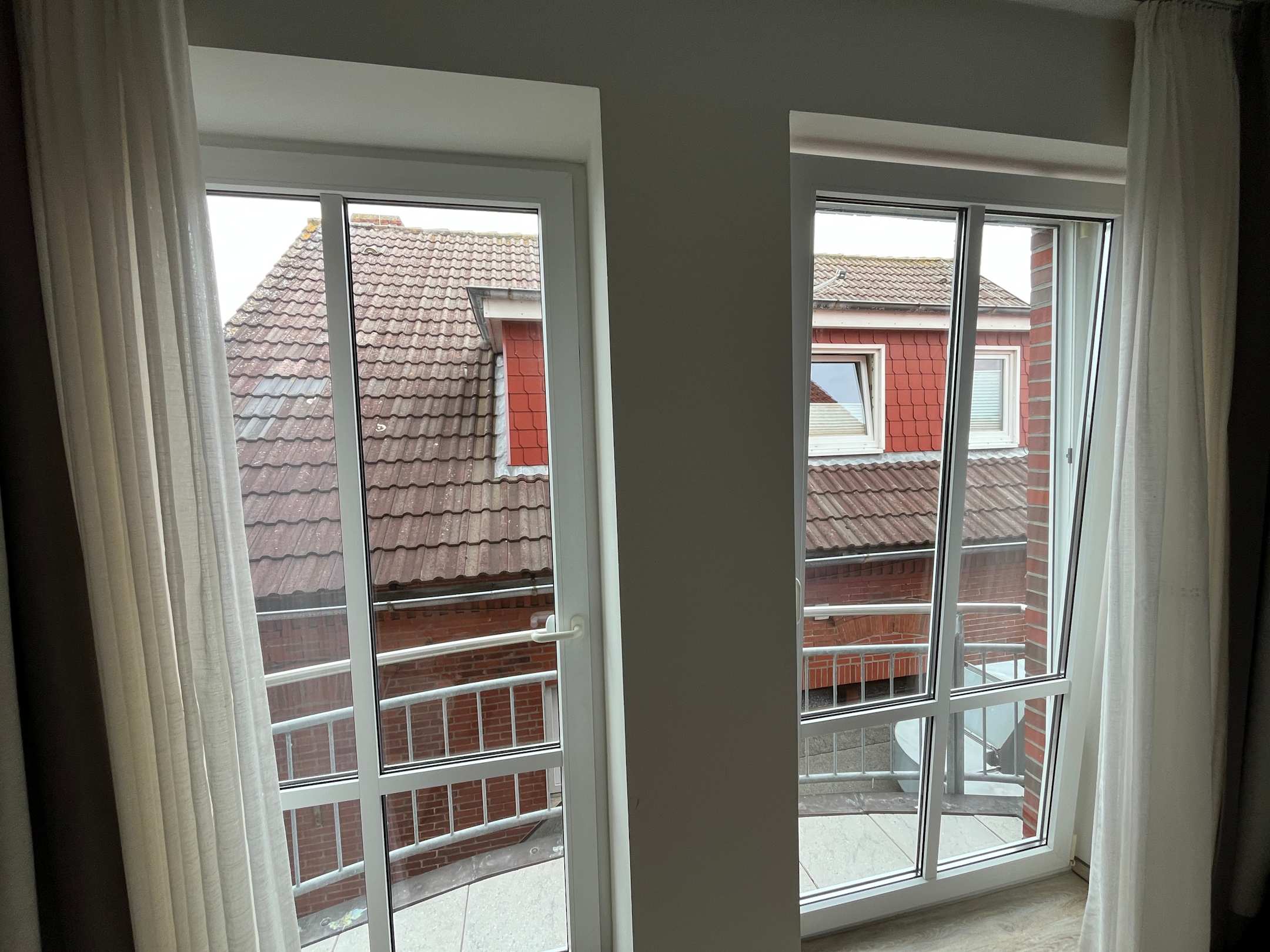 Zitat aus der Zimmerbeschreibeung: "Unsere modernen, stilvoll eingerichteten Zimmer bieten Ihnen einen Blick auf Neuharlingersiel oder den Hafen..." Da stimmt was nicht!