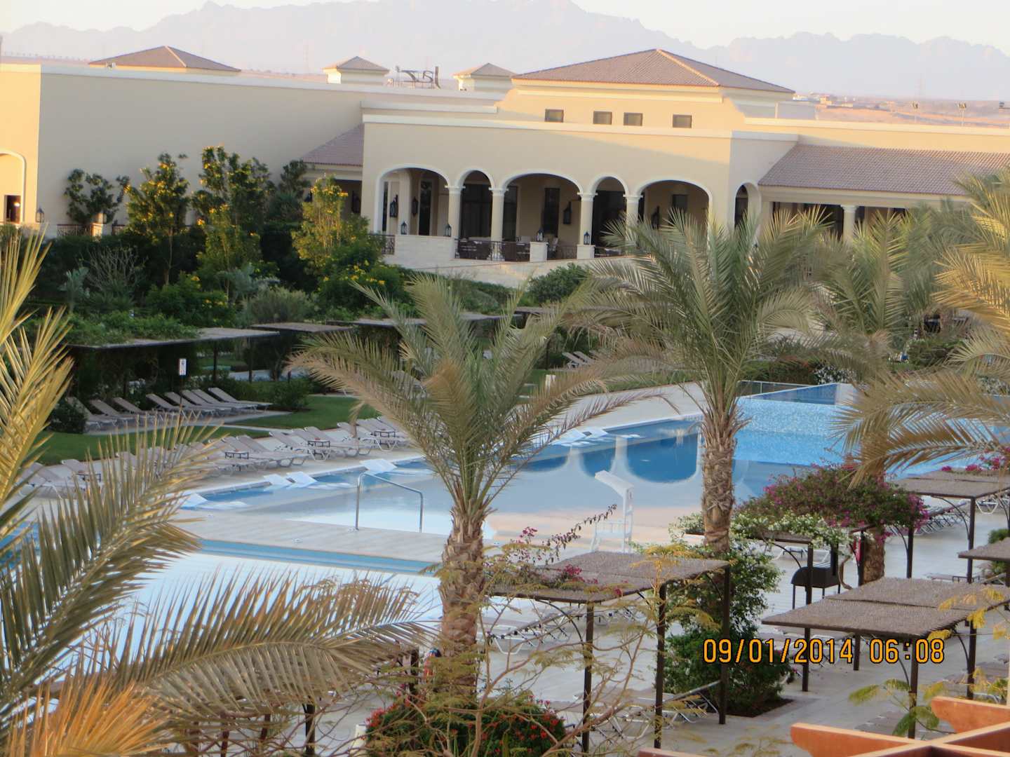 Sonnenaufgang - Ausblick zur Poolanlage